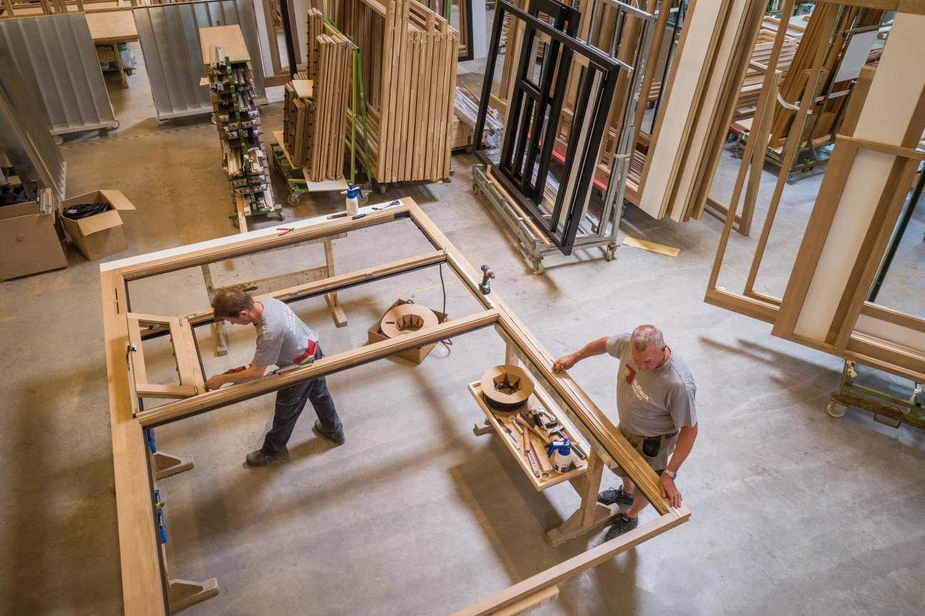 Ruffieux Fenêtres SA a à cœur de maintenir une fabrication locale. Sa force ? Contrairement à d'autres qui, sur fond de mondialisation, misent sur l'importation, l'entreprise gruérienne développe et fabrique ses propres produits. Elle reçoit le bois sous forme de carrelet, les profils en aluminium et les profils PVC en barre de six mètres.
